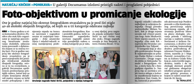 Novi list, 8.6.2016. Foto-objektivom u promicanje ekologije