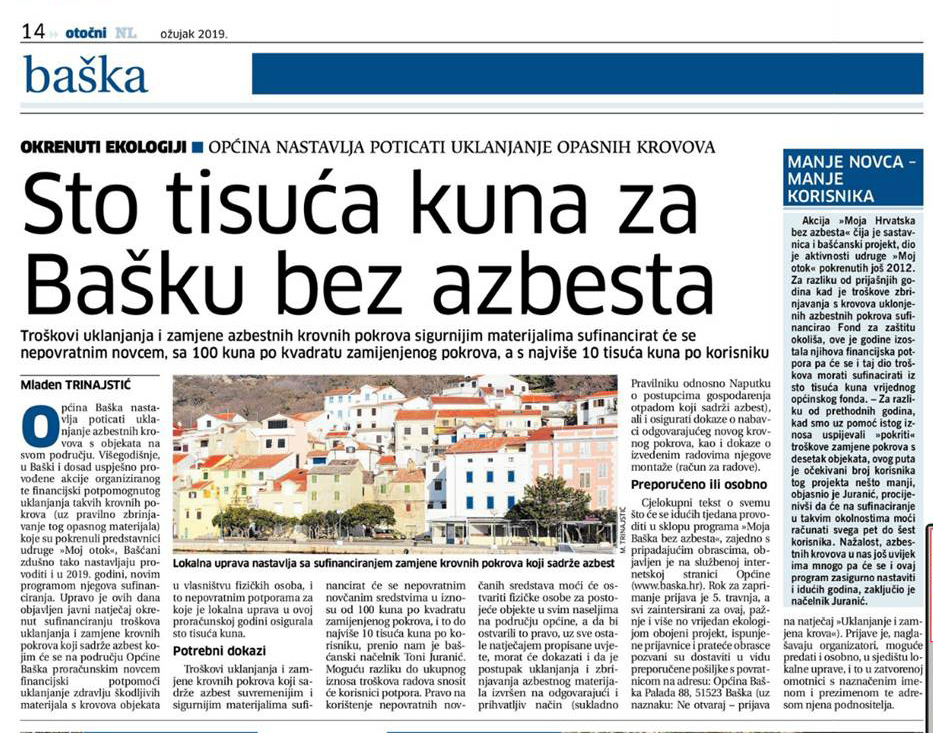 Sto tisuća kuna za Bašku bez azbesta